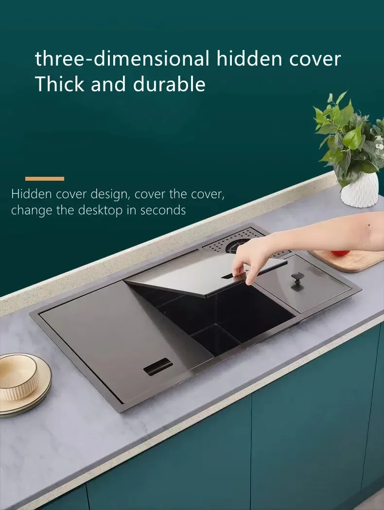 • 78x46cm Nano Hidden Kitchen Sink 304 Stainless Steel Cup Washer Household Washing Vegetable Basin With Trash Can