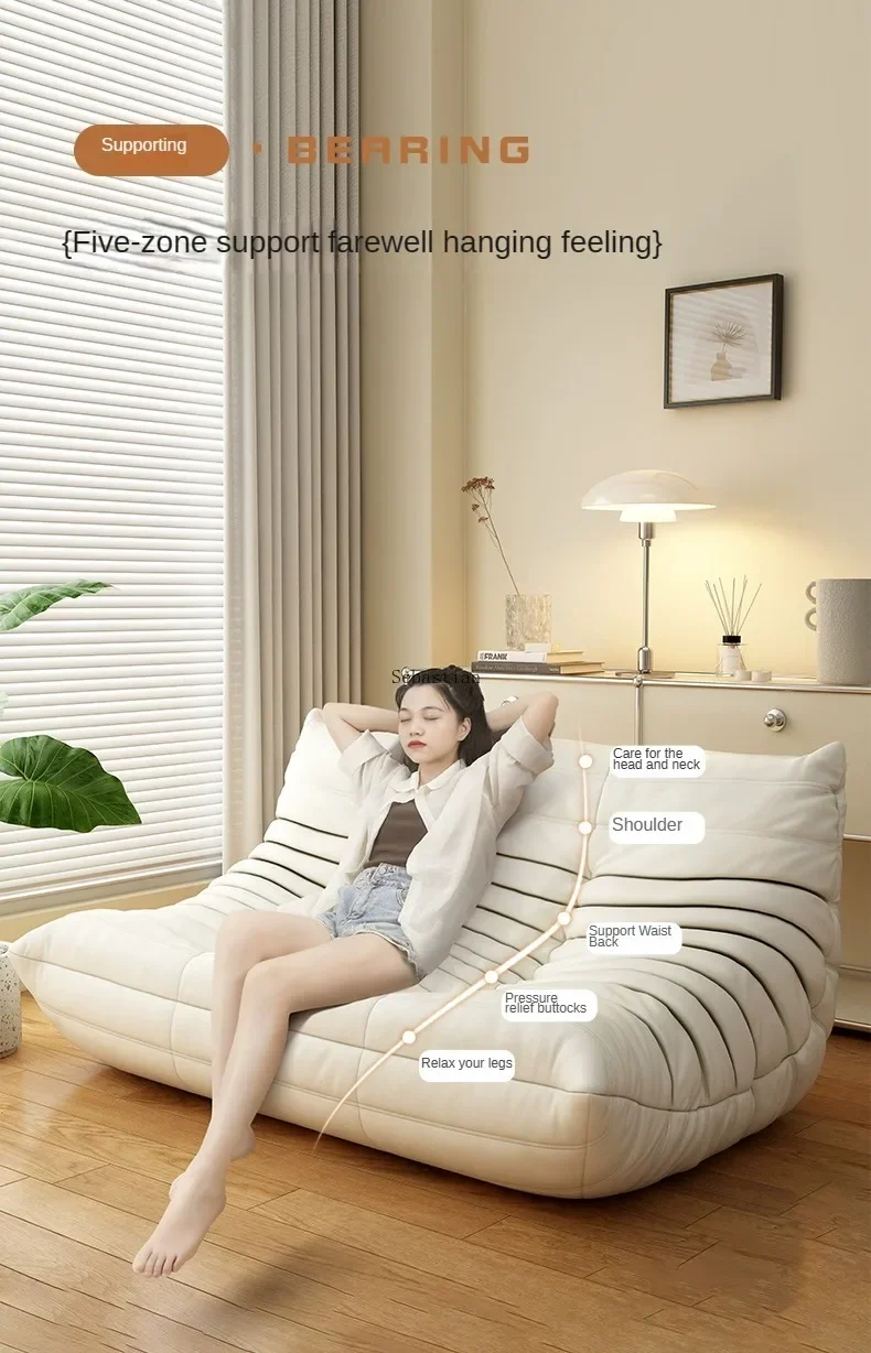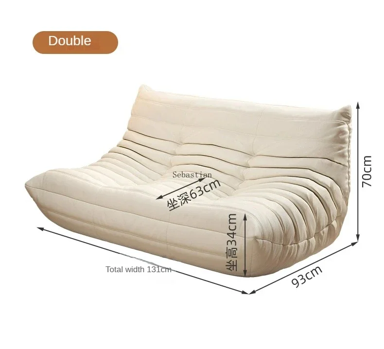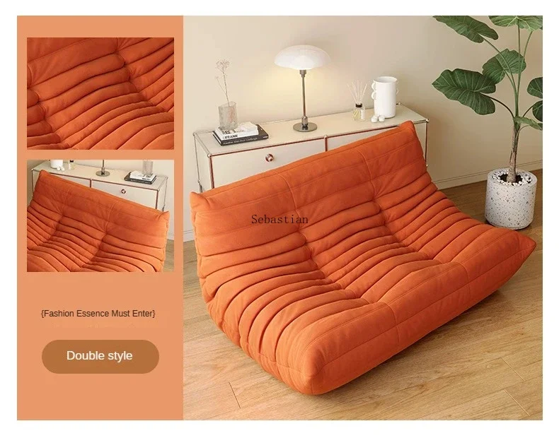 Caterpillar Lazy Sofa Small House Living Room Tatami Bedroom Double Sofa Chair Sleepable or Lying Fabric Leather Art Sofa