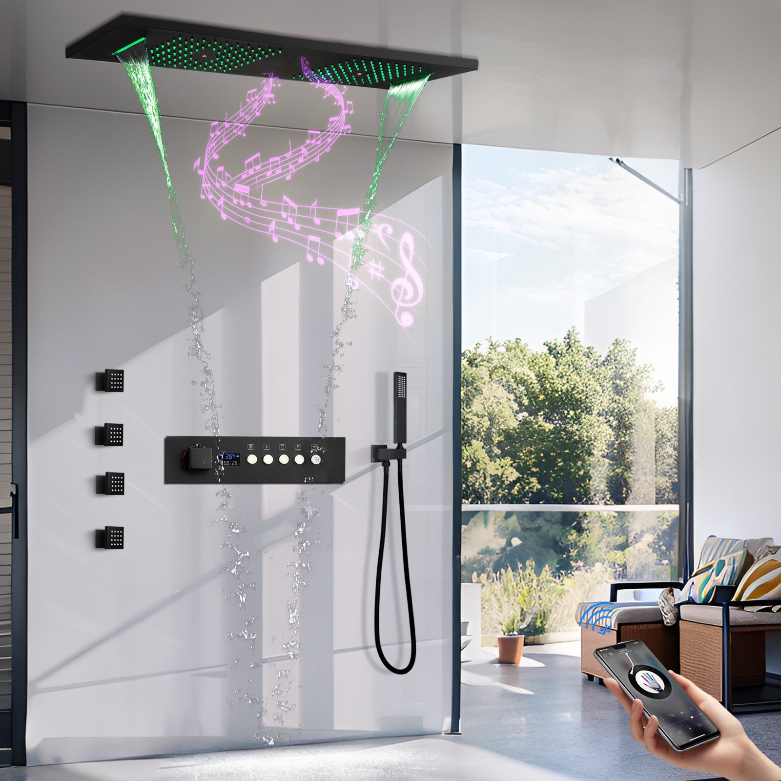 Ceiling Ceiling LED Shower Top Spray With Bluetooth Music Bathroom Digital Display Constant Temperature Shower Suit 900 * 300mm