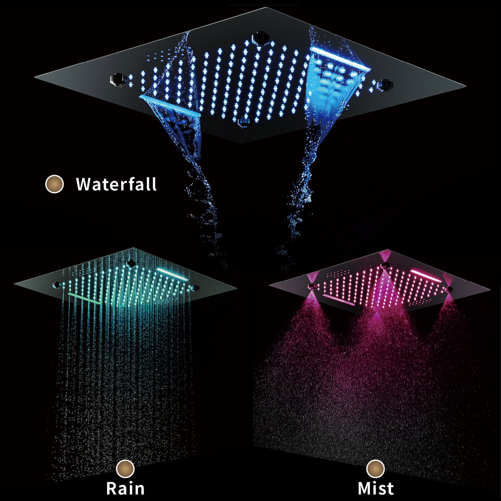 • HIDEEP 20-inch LED Top Spray Rain Waterfall Spray Ceiling Embedded Shower Shower Head