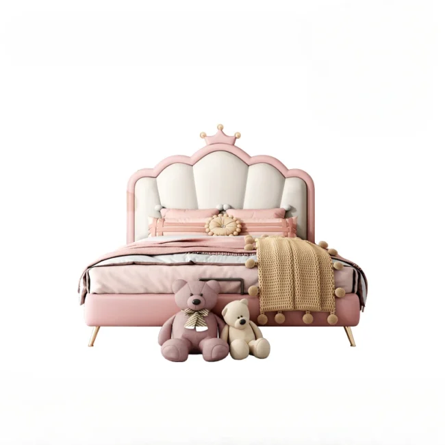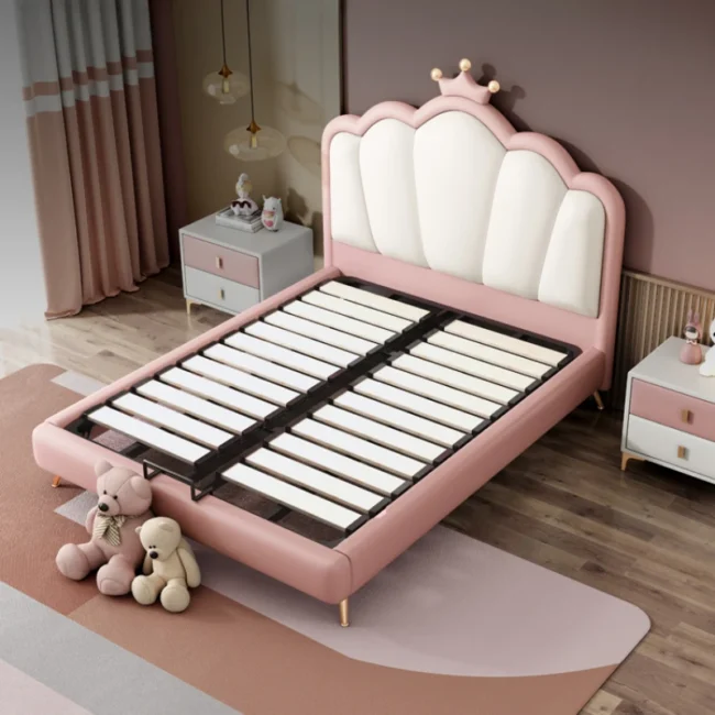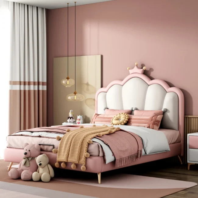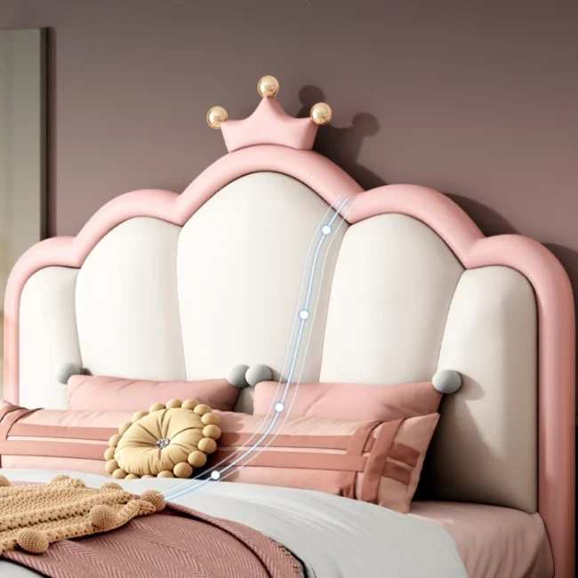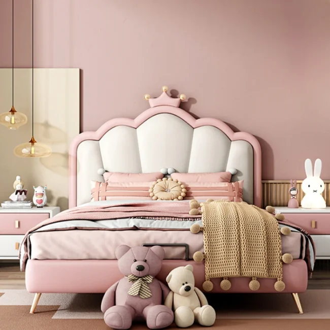 Pretty Modern Luxury Childrens Bed Girls Elegant Princess Villa Loft Leather Bed Kids Headboards Camas De Dormitorio Furnitur