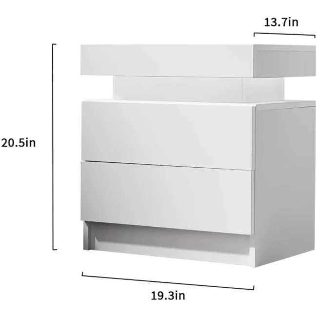 Side Bed Table With LED Light Bedside Tables for the Bedroom Furniture Generic Nightstand Set of 2 LED Nightstand With 2 Drawers